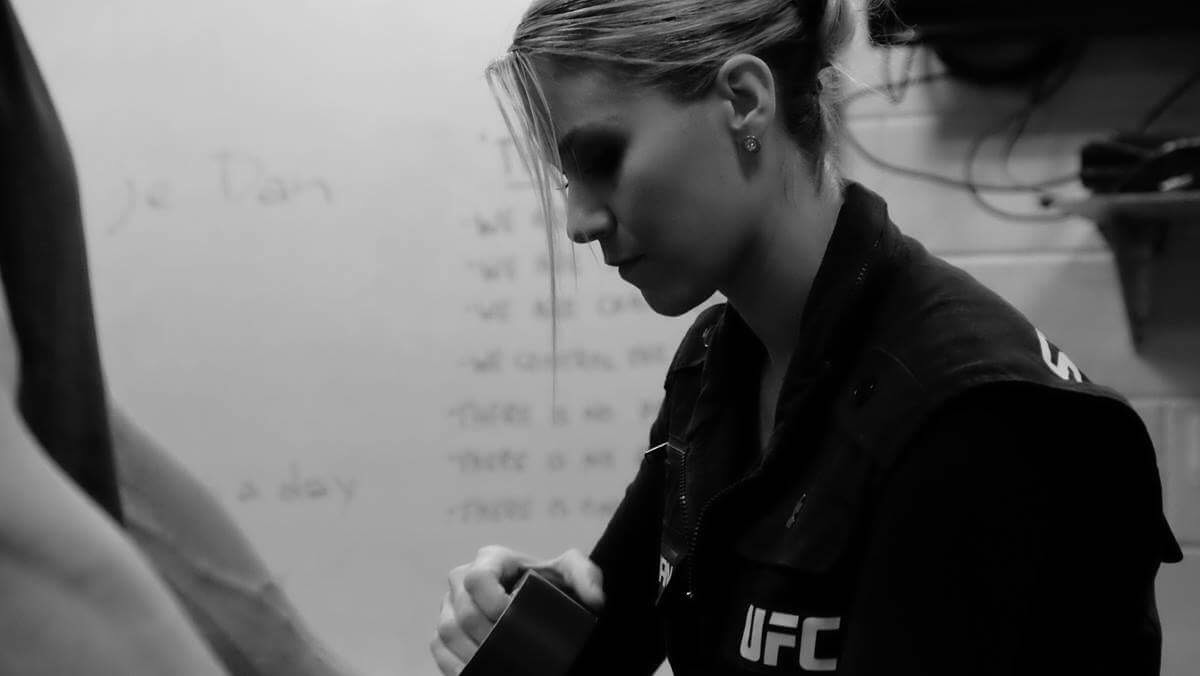 To be honest in the beginning, I wasn’t sure what I could do in the industry. All that was available to me, to my knowledge at the time, was to be a fighter. I knew I wasn’t a fighter, so I decided to ask the promoter of the event, what I could do at his show. He looked me up and down and said, “You could be a ring girl! I have a 2 day Halloween tournament that you could work.” Well, that was not what I had in mind! But I was willing to give it a try, so I could at least get my foot in the door and see what else there could be for me. When I went back to the event a few weeks later to work as a ring girl, I was in the back with the other girls getting ready. Trying on and trading the plethora of bikini’s back and forth seeing who looked best in each one. Once I found my string for the evening, I decided to escape the room of bikini madness, to see other options. As I was checking things out, I saw coaches wrapping the fighter hands. My heart fluttered and I knew at that moment….That was what I wanted to do! To me, there is no greater honor than wrapping the hands of a the fighter! Those are my exact thoughts and feeling to this day. There is no better job than that, in my opinion. I left that evening with a dream, went home and started to wrap my hands over and over again. I started to frequent local MMA/Muay Thai gyms volunteering my time 5 days a week, just wrapping fighters for their sparring sessions. I didn’t learn the Cut side of things until years later, which is a whole new level of love!