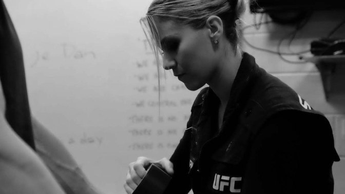 Swayze Valentine has been a part of several of the UFC’s biggest fights, even if you’ve never heard of her. She is a professional cutwoman and she has gone from fan, to working regional promotions, to now wrapping the hands of some of the best fighters in the world. “The Queen of Cuts” took time to speak to MMAUncaged about her fascinating career in the sport of MMA.